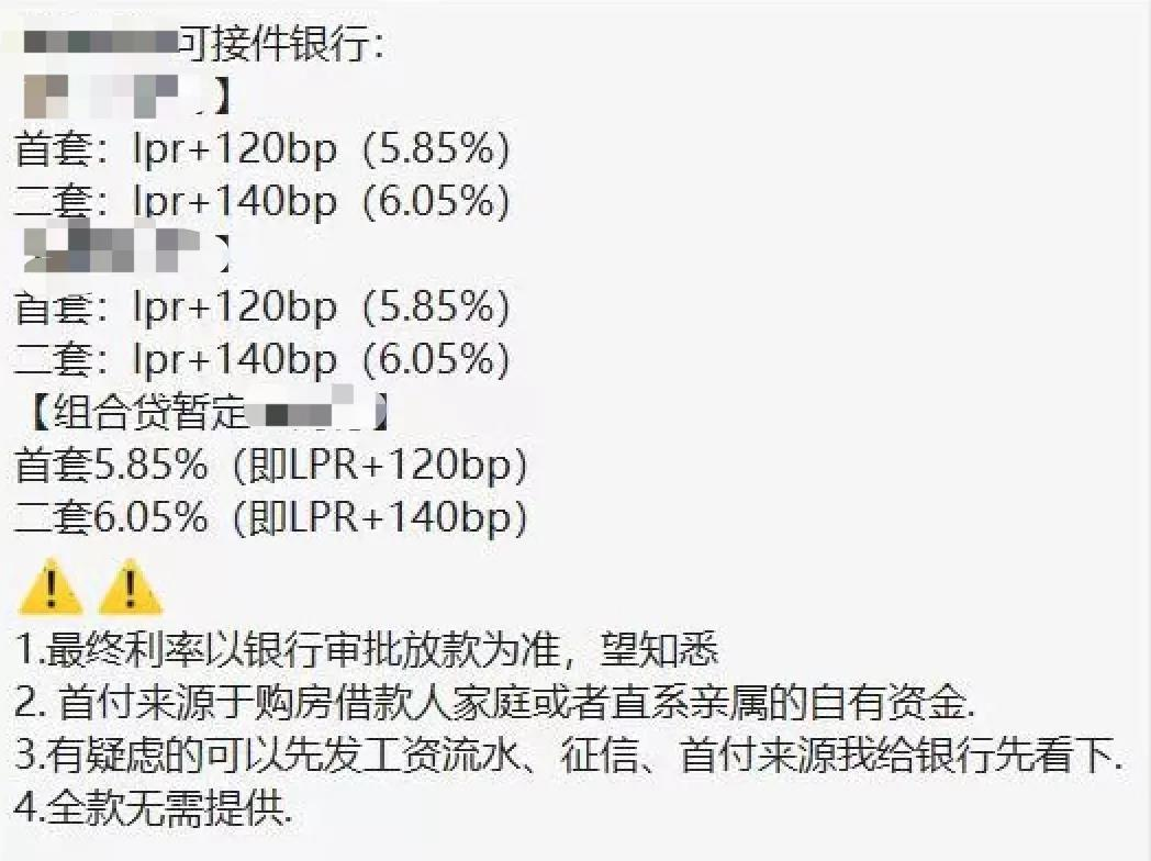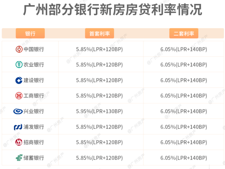 此外,据广州房产消息,大部分银行首套房贷利率都要5.85%,而兴业银行首套房贷利率竟高达5.95%。而在二套利率上,各大行普遍为6.05%。(具体以银行审批为准。)
