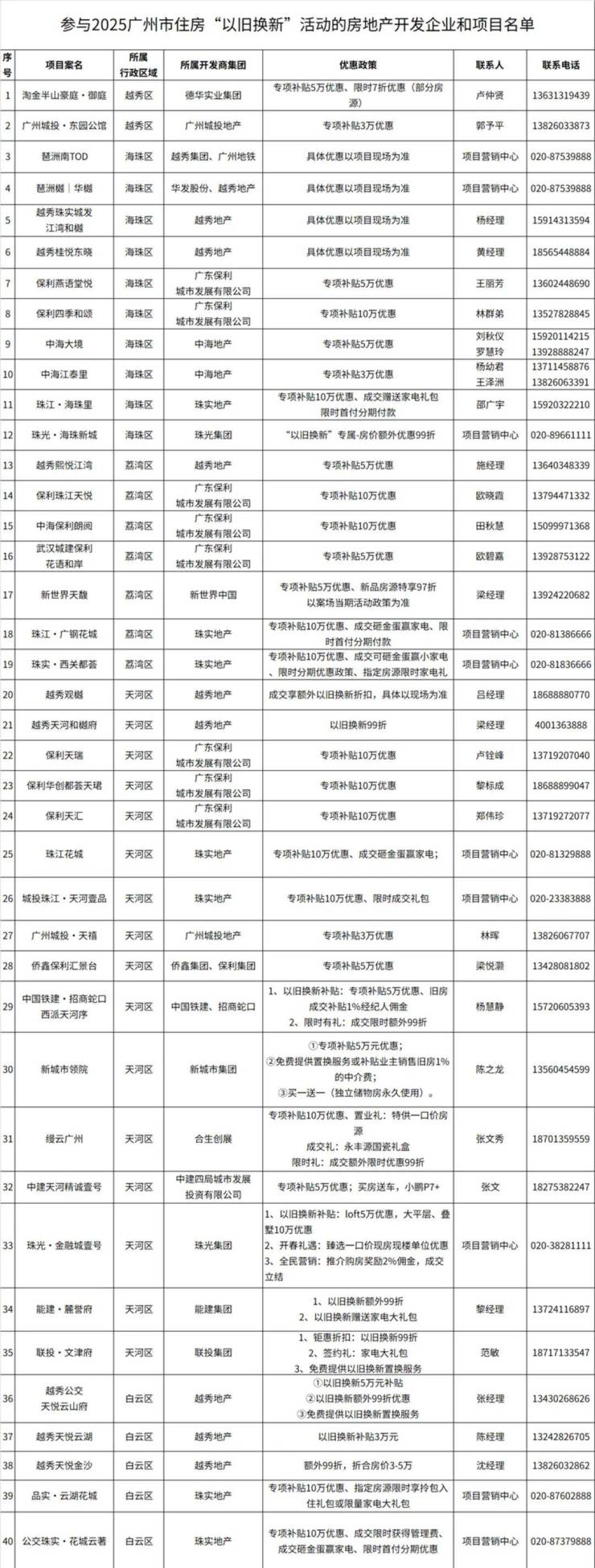 本次活动首批吸引超40家房企、近70个项目参与,覆盖刚需、改善、高端全产品线,并推出“折上折”“无忧退订”“家装大礼包”等叠加优惠。广州市房协将依托“广州市房地产行业协会”官方微信小程序搭建线上服务平台,实现房源智能匹配、补贴申领、政策咨询等功能,进一步优化市民换房体验。