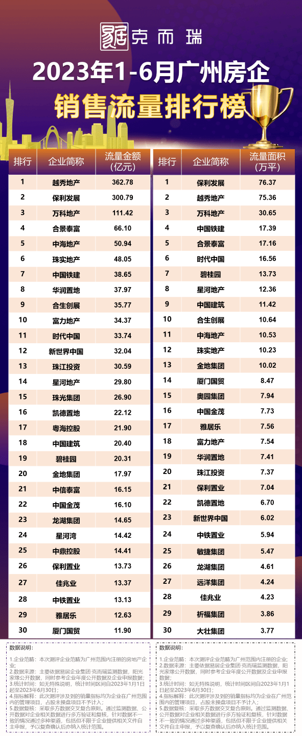 1970亿元!TOP10洗牌! 2023年1-6月广州房企排行榜公布
