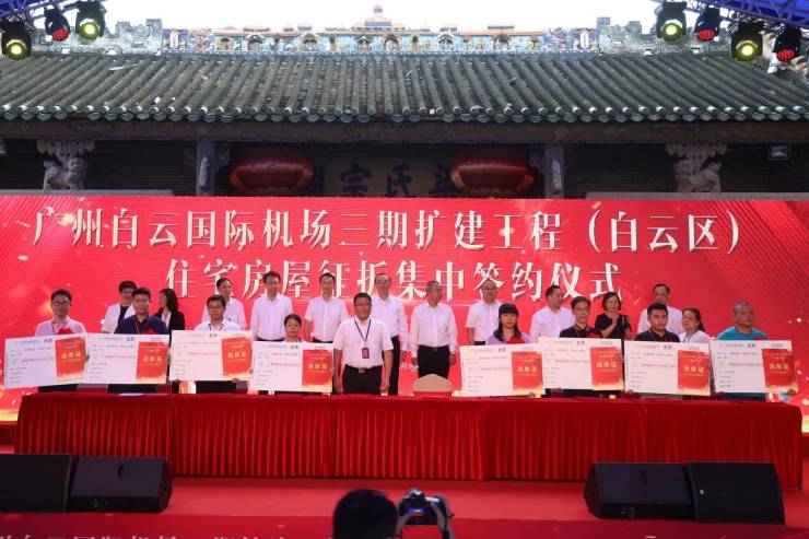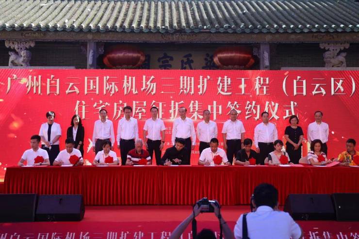 白云区举行广州白云国际机场三期扩建工程(白云区)住宅房屋征拆集中签约仪式,全面吹响白云国际机场三期扩建工程征拆交地的“冲锋号”。