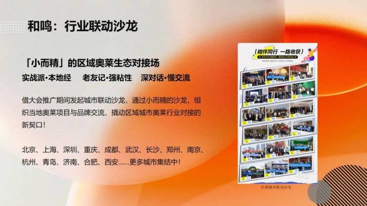 b.城市沙龙:联动北京、上海、深圳等15城,举办“小而精”奥莱生态对接会,激活区域资源。