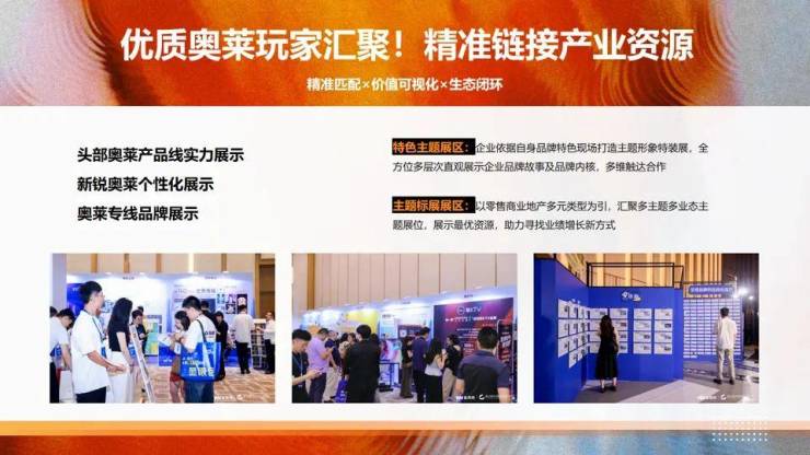 搭建“奥莱项目/品牌对接洽谈展”,精准匹配优质奥莱项目与优质品牌资源,推动招商合作高效落地。