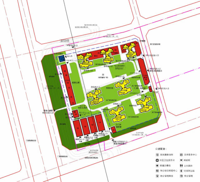 公建配套有健身场所、邮政所、社区卫生服务站、街道办事处、综合信访维稳中心、综合管理用房、政务服务中心等,旨在提供舒适便利的生活环境。