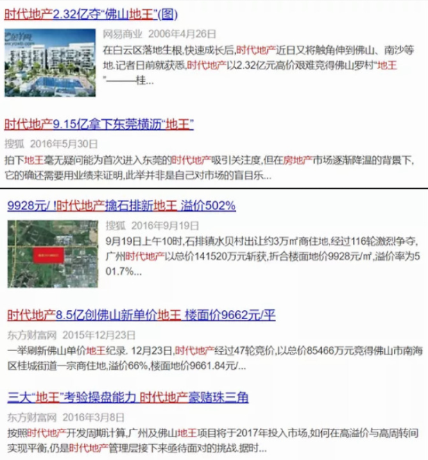 收入减少负债走高,主要是由于时代出于扩大规模的需要而不断举债融资。为了实现规模化发展,不惜多次提升拿地金额与溢价水平,也因此获得“帝王专业户”的称号。