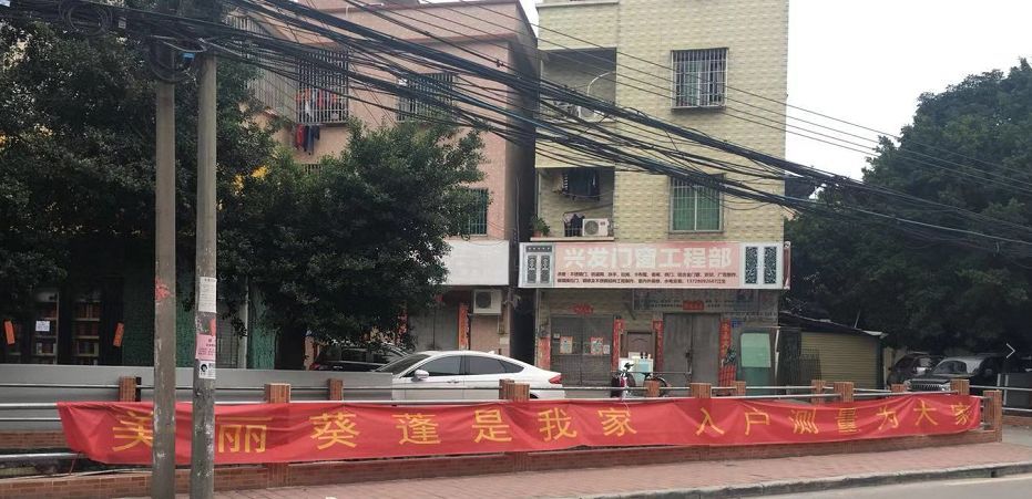 河道边则拉上了横幅“美丽葵蓬是我家 入户测量靠大家”。可见,目前的旧改已经进入到入户测量阶段。