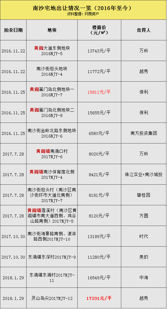 2016年11月,黄阁出让了3宗地块,单价均在1万以后,是当时南沙单价较高的三宗地块。这个记录,直到今年1月份才被打破。