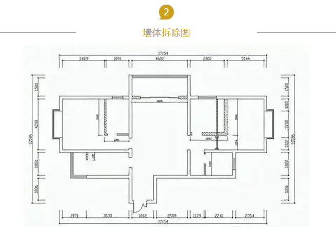墙体拆除平面图是根据设计方案将需要改动结构的墙体在图纸上标明的标识,比较常见的表示方法是在图纸上可以用虚线表示需要拆除的墙体,深色表示改建的墙体。