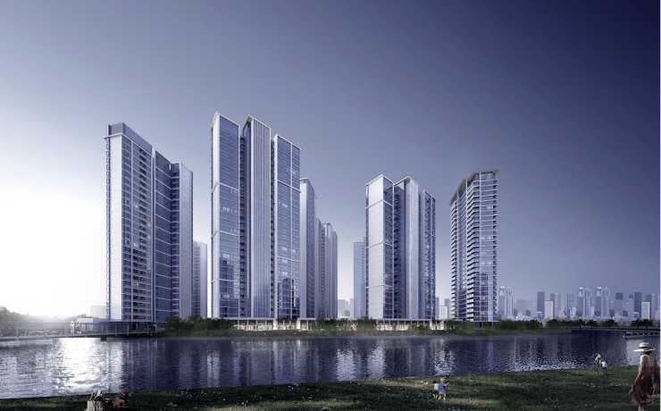 该项目总占地面积约 13.3 万㎡,共规划有 25 栋高层住宅,总货量约4344 户,主推建面约72-124㎡三至四房。