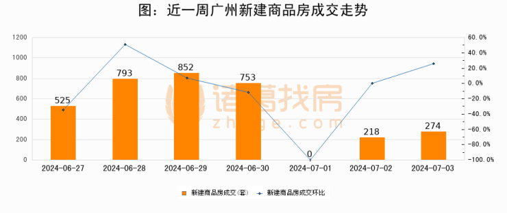 【广州成交日报】07月03日新房成交274套;涨价房源84套