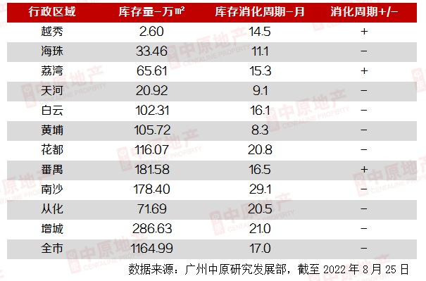 截至8月末,全市库存量1165万㎡,去化周期17个月,去化周期对比上个月轻微回落;