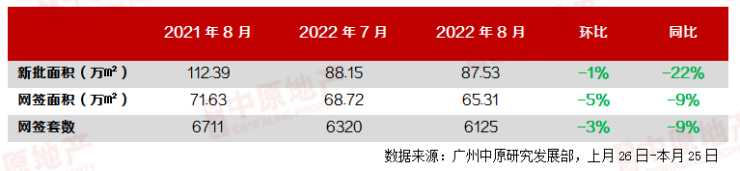 8月广州新房网签6125宗,环比下跌3%,比去年同期成交下跌9%。