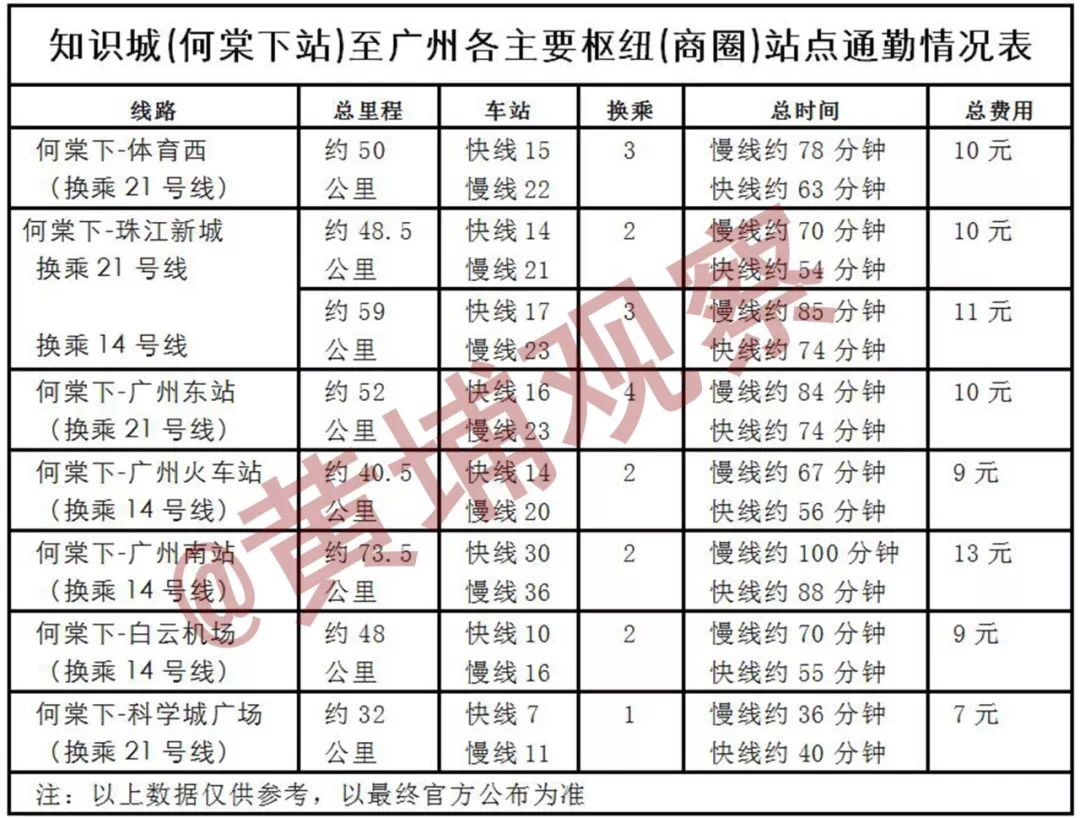 知识城进入市区各大枢纽通勤成本,看得头大!